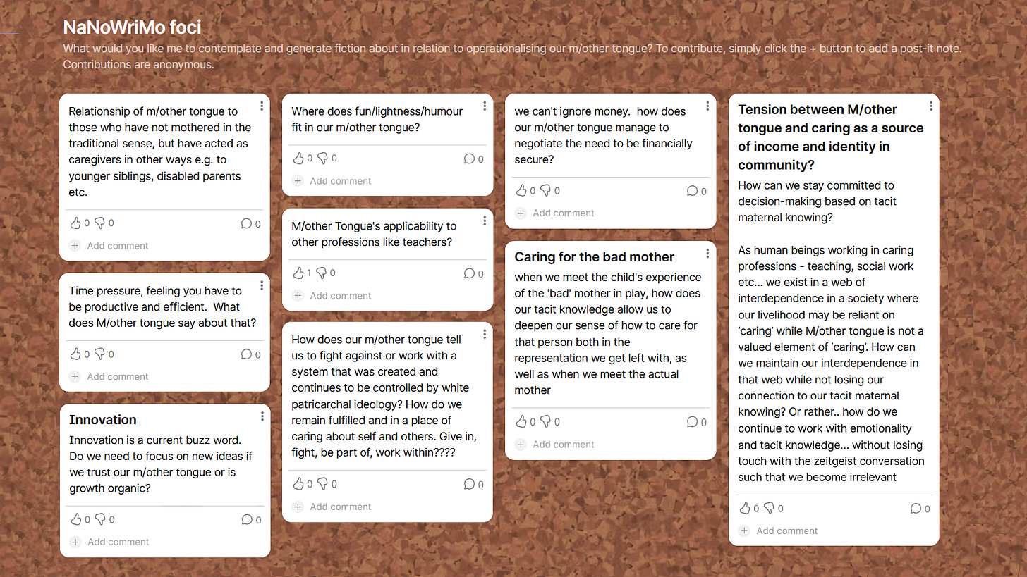 This post marks a full year of this project. I have a loose five-year span in mind, much like a part-time doctorate. And you, dear readers, are the supervisors, peer reviewers, and examiners who will ultimately judge whether I manage to shape a coherent way of thinking about how our work, whatever form it takes, can be rooted in love and care. Over this first year, I have become clearer that this is what I mean when I talk about ‘operationalising our m/other tongue’.